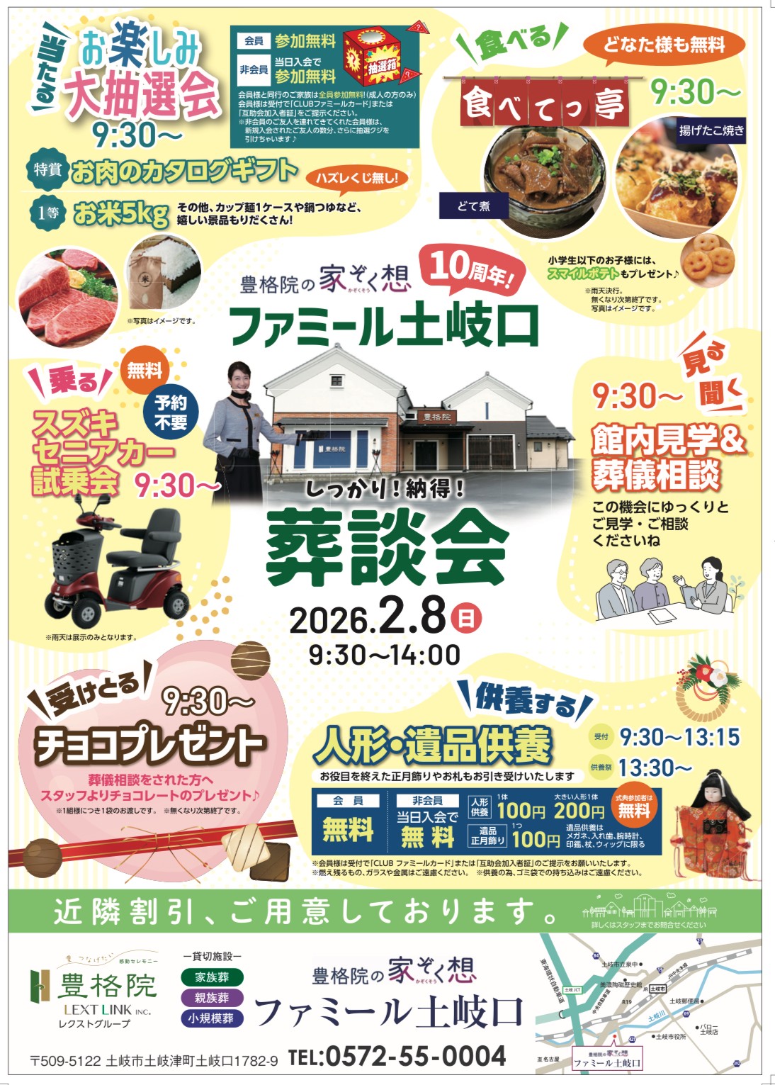 その他、人形供養や食べてっ亭での食べ物振る舞いの他、バレンタイン企画としまして葬儀相談していただいた方へ、チョコレートのプレゼントも予定しております♪